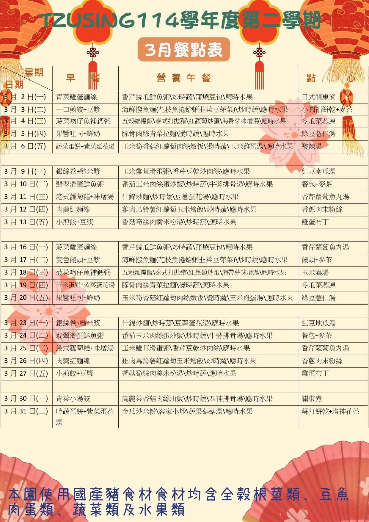 餐點表
